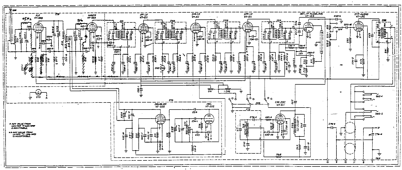 A CW oscillator is provided. Three 6SG7's provide the IF gain, whilst provision is made for local or line audio output.