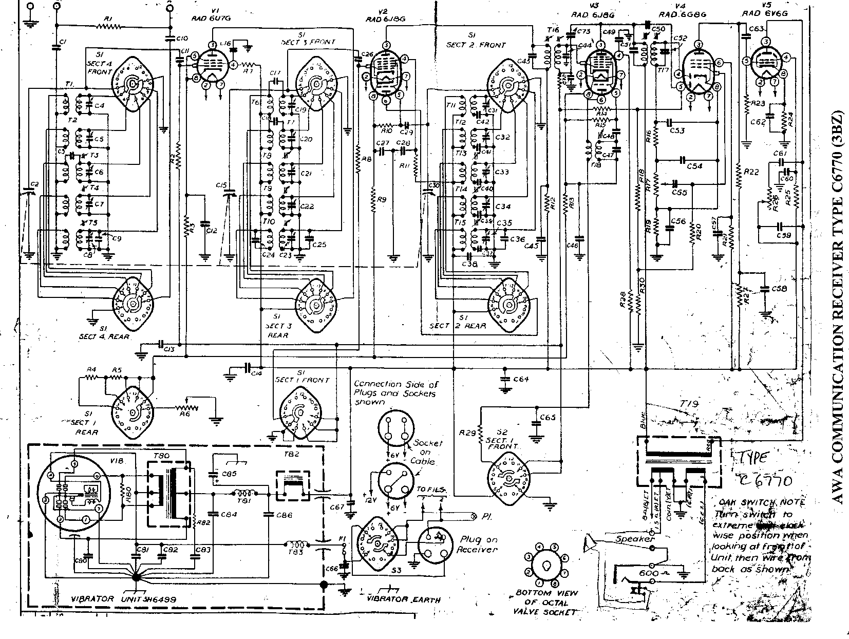 Tuning Ranges:200 - 515 kc; 545 - 1650kc; 1.5 - 4.6 mcs; 3.5 - 11.1mcs; 9 - 30mcs In the case of the 3C6770, the 9-30mcs range is replaced by a crystal locked position.