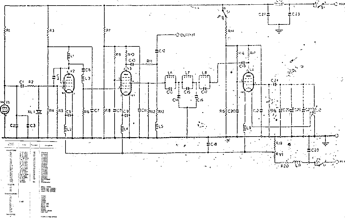 A crystal controlled oscillator provides fixed frequency signals of 500kc/s to well beyond 10mc/s.