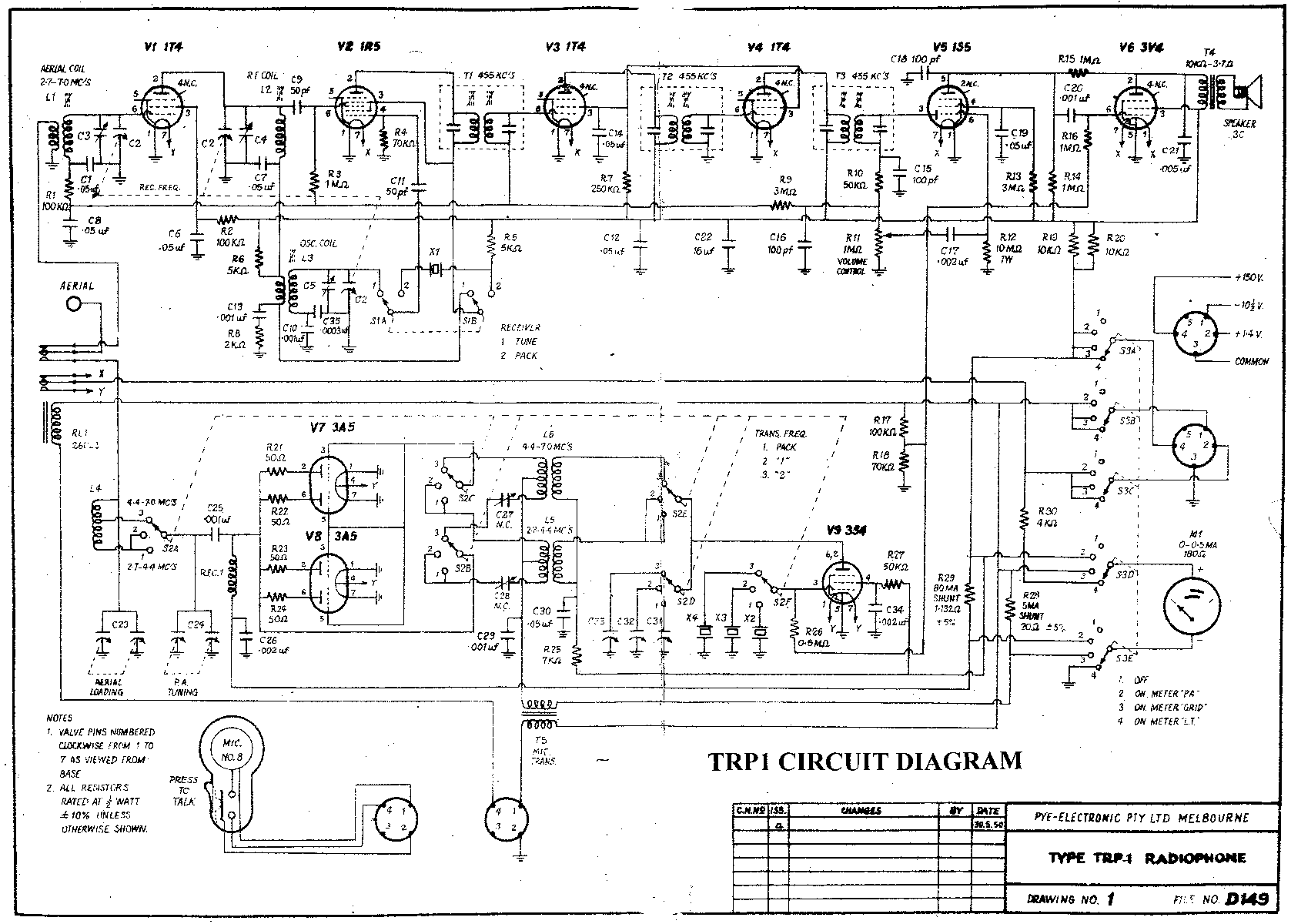 Note: TX "C" current varies according to packing of the carbon granules in the microphone - it can reach 200ma.