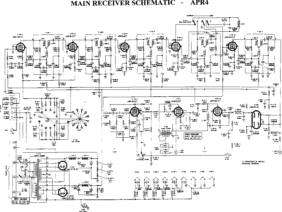 The APR4 utilized a 115/80v AC supply at 60-2000 cycles and also required 28vdc @ 900ma to drive the tuning head motor.