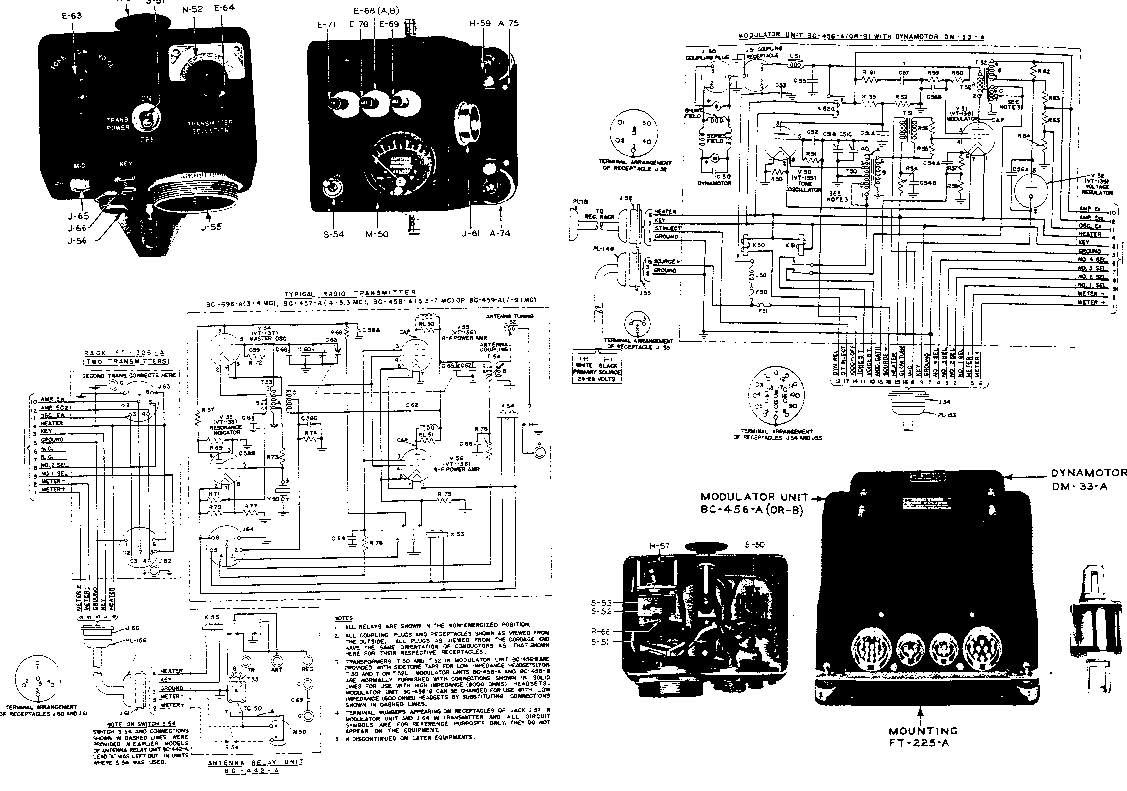 The dynamotor was DM-33-A, which clipped to the Modulator BC-456-A. This unit was connected to feed each transmitter as it was selected. Remote Control Box BC-451 allowed selection of the appropriate transmitter.
