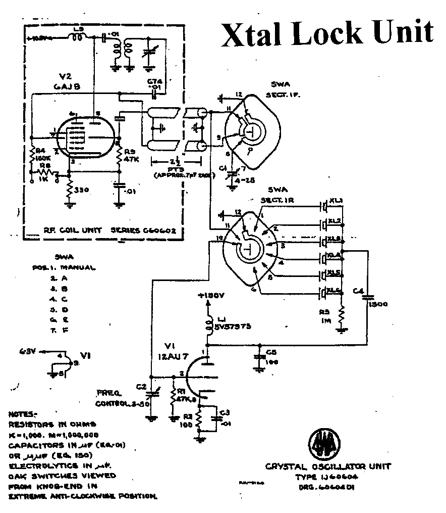 | 12AU7 Xtal Oscillator (6 xtal positions) | CW/SSB Detector 12AU7 Product Detector | 6AU6 Audio Amplifier |
